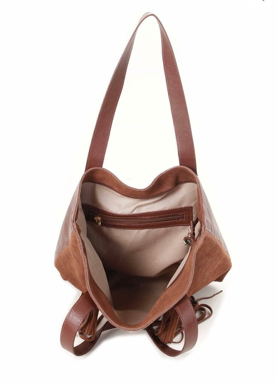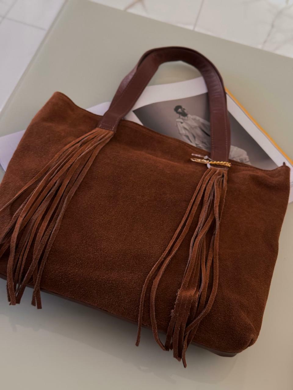 Confeccionada em camurça de alta qualidade com couro, proporcionando um acabamento refinado e sofisticado. Modelo sacola, ideal para quem busca estilo e praticidade em um único acessório.