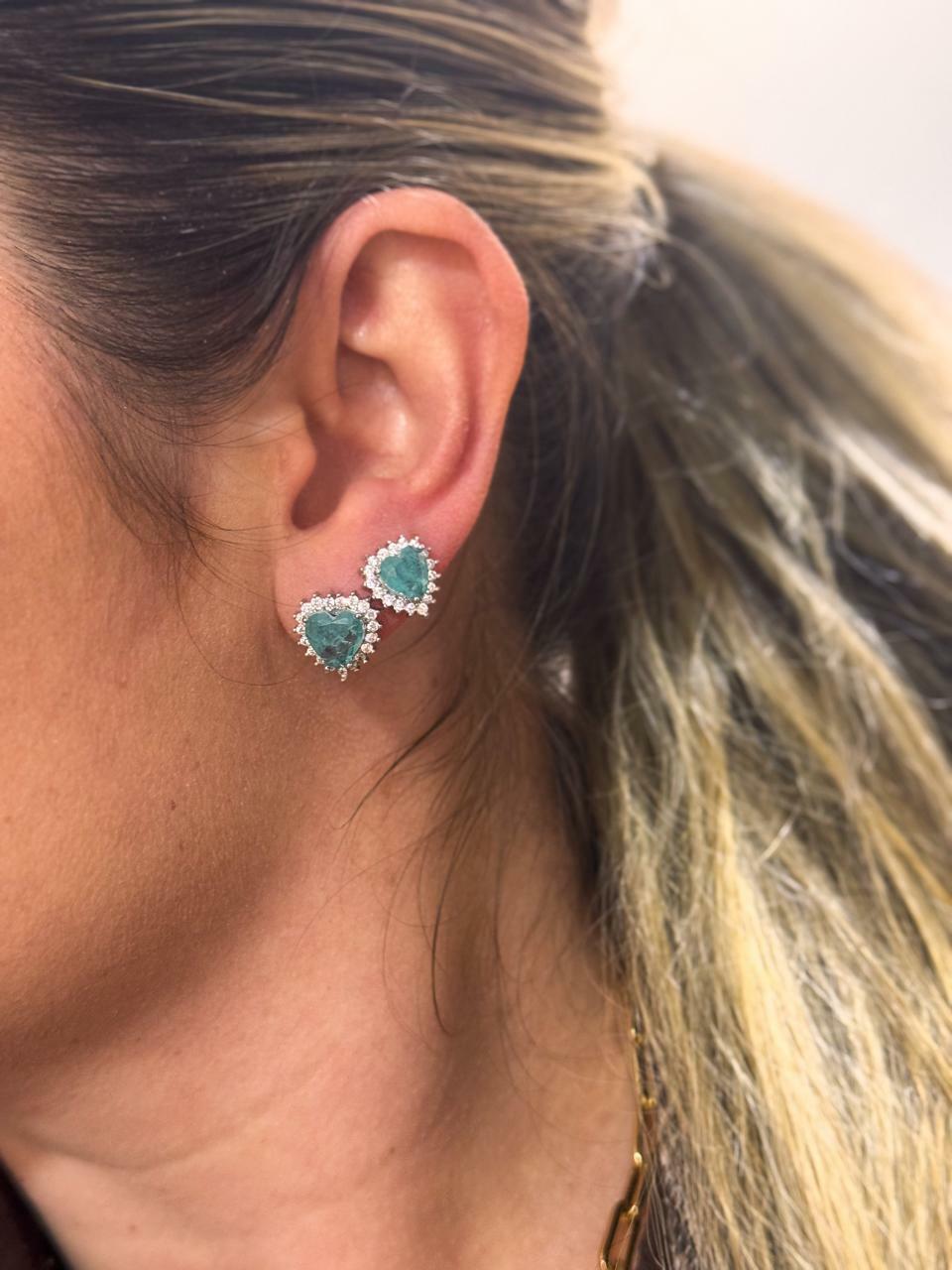 brinco coração pedra azul cravejado folheado
