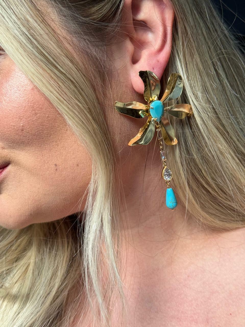 Brinco flor folheado a ouro