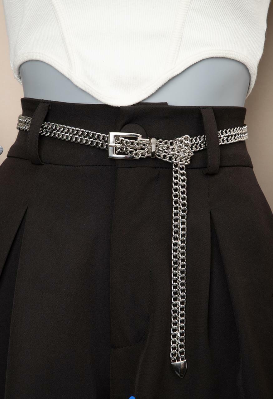 Cinto corrente em metal, resistente e com acabamento premium. Design sofisticado que adiciona modernidade e elegância atemporal a looks casuais ou formais.