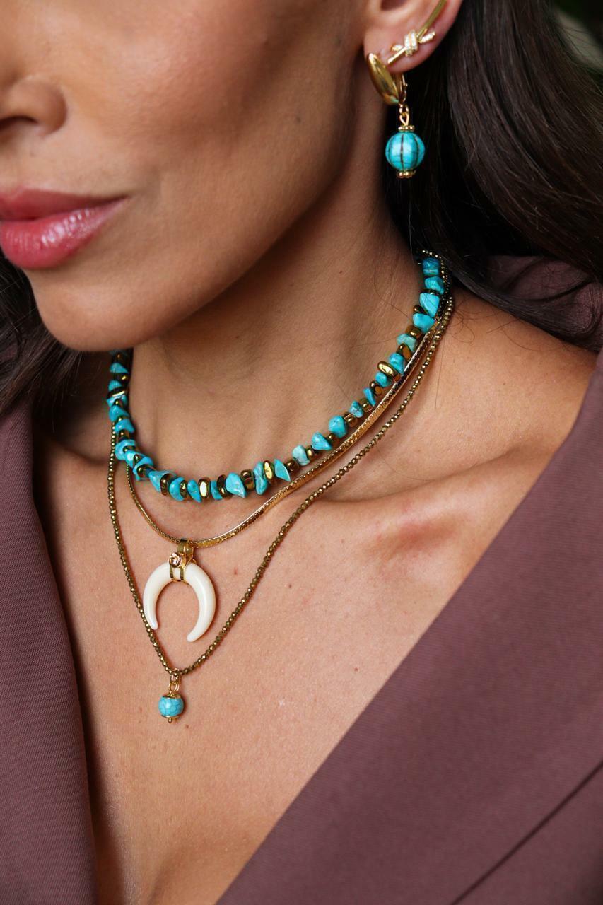 colar azul turquesa semi jóia